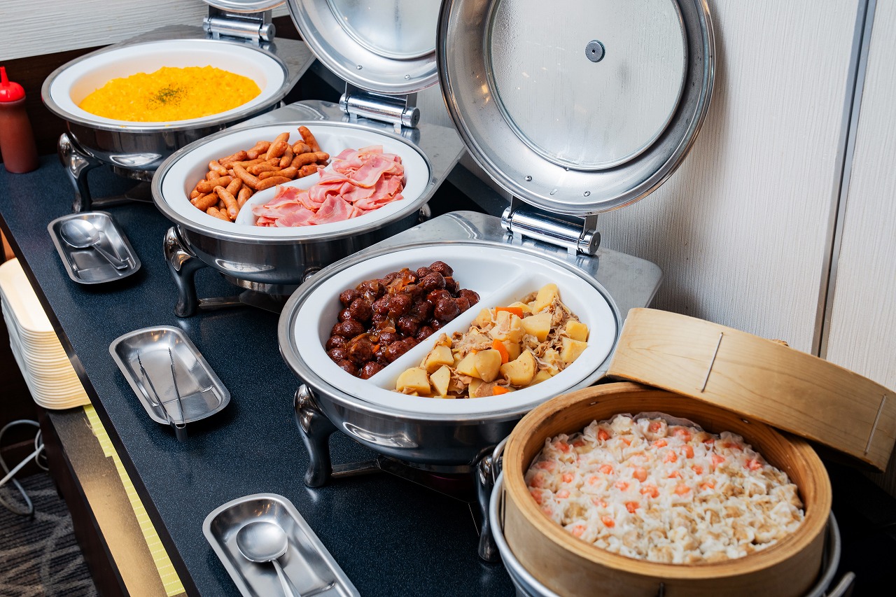 和洋あわせて50品以上。すべてのお料理にフードカバーを設置し感染対策!!